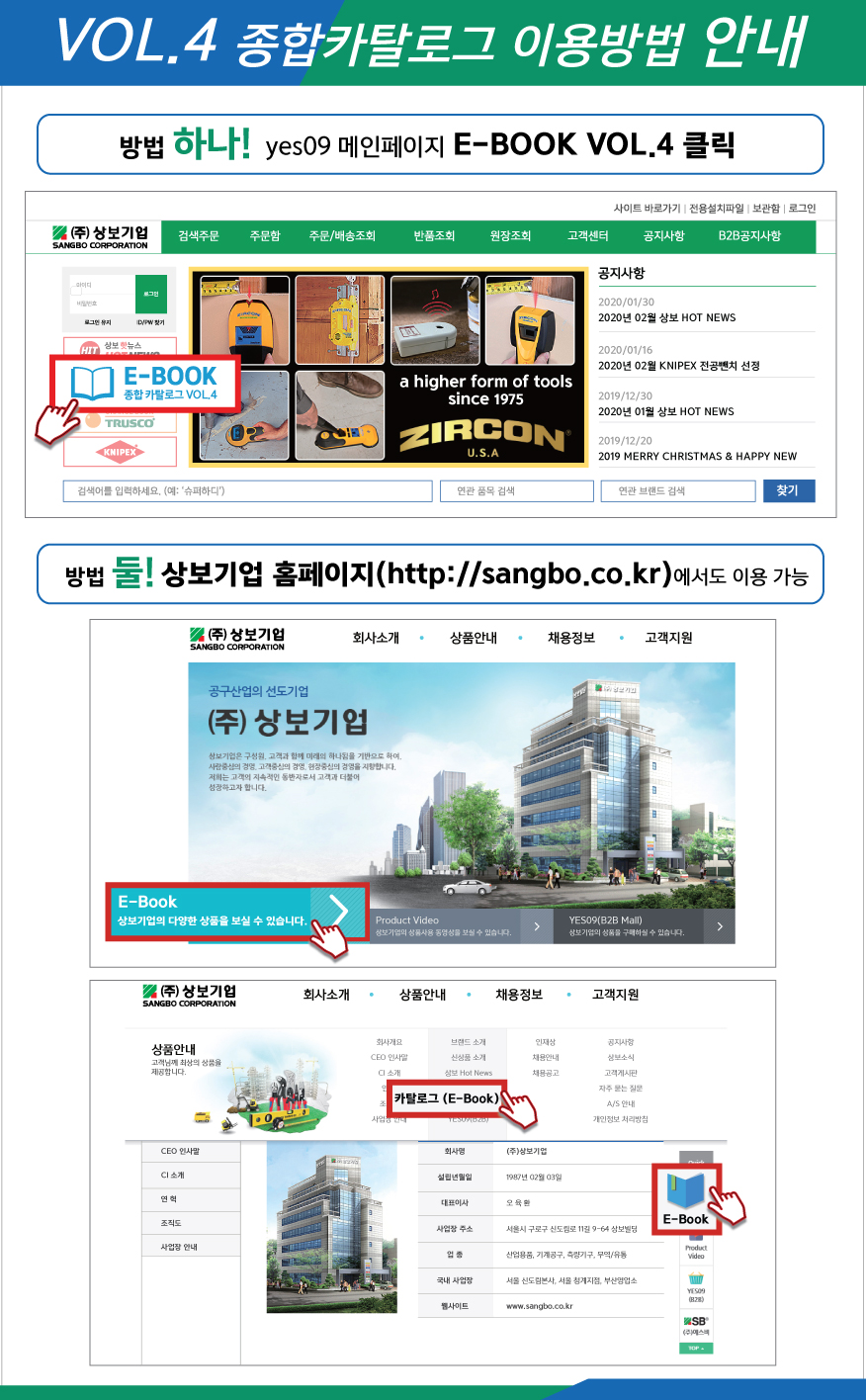 또한, (주)상보기업 홈페이지 (http://sangbo.co.kr)을 통해서도 종합카탈로그 VOL.4를 이용하실 수 있습니다.