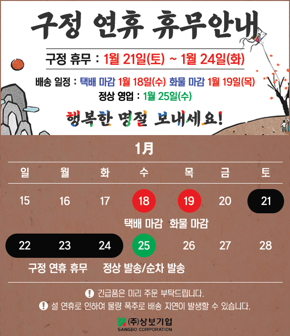 2023년 구정 배송 및 휴무 안내