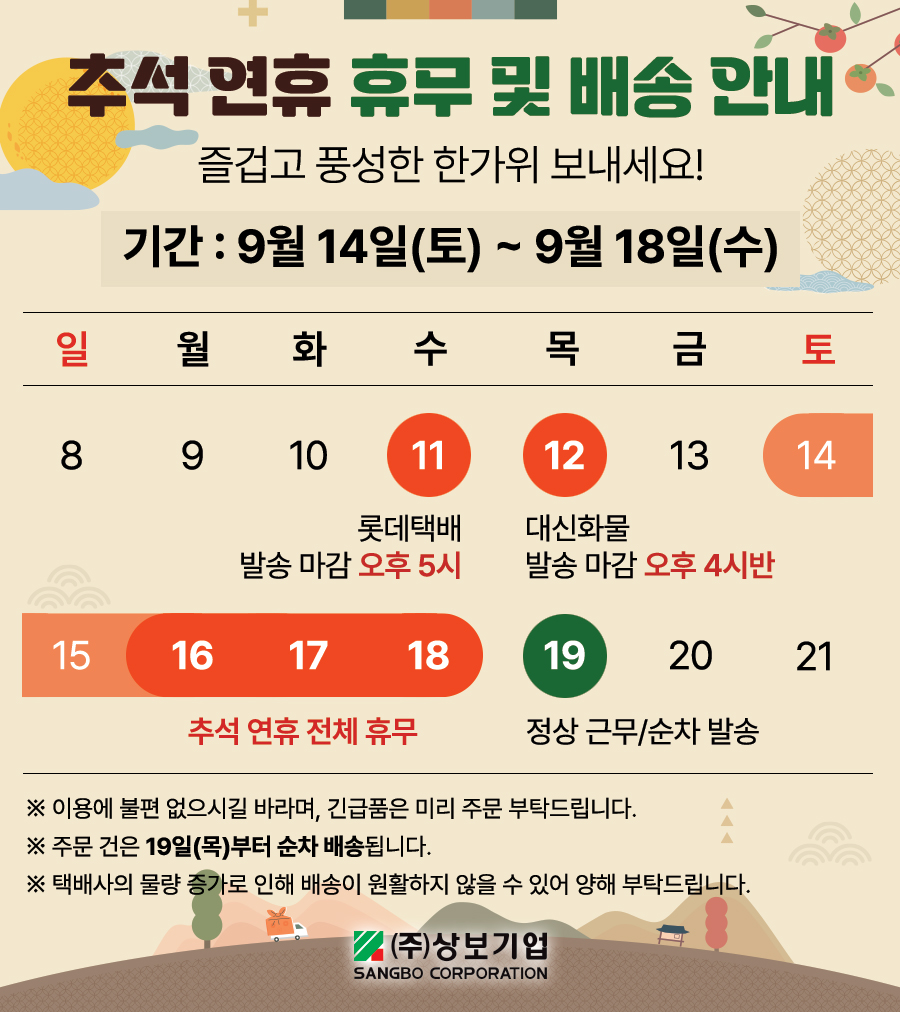 2024년 추석 연휴 휴무 및 배송 안내