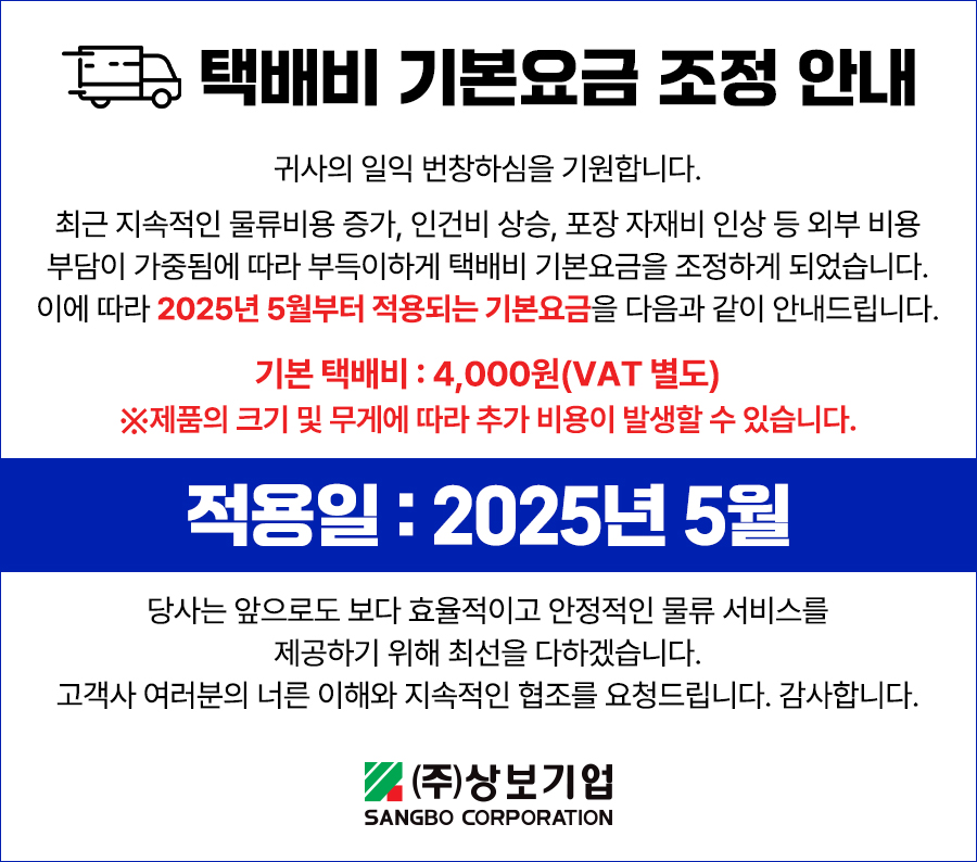 2025년 5월 택배비 기본요금 조정 안내